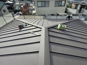 既存の屋根を残したまま上からカバーするカバー工法をご提案致しました。解体工事が必要ない工法なのでコスト削減と工期短縮に繋がります。