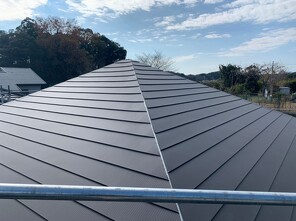 築30年の建物で屋根材が割れて劣化し雨漏りが発生しており、今回は屋根全面をガルバリウム鋼板で覆いかぶせるカバールーフ『ガルパワー』を採用していただきました。