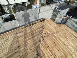 塗装では雨漏り修理出来ないことと原因箇所を説明し、今の瓦剝がして新しい屋根に葺き替える減災ルーフをご提案して施工しました。瓦屋根に比べて軽くなるので耐震性能は向上します。